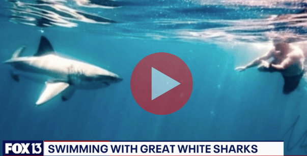 A Tampa Bay Area fishing captain and his wife captured a once-in-a-lifetime moment on camera when they were watching a pod of dolphins swimming and saw a great white shark.